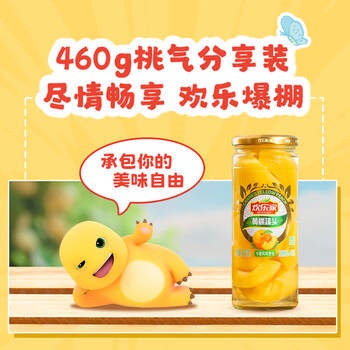 欢乐家×奶龙 黄桃罐头460g*4瓶 新鲜水果罐头 礼盒送礼 休闲零食