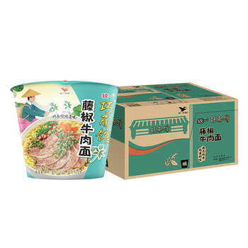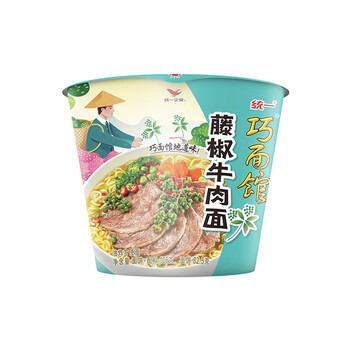统一 巧面馆 藤椒牛肉味 方便面 102克*12桶 桶面整箱