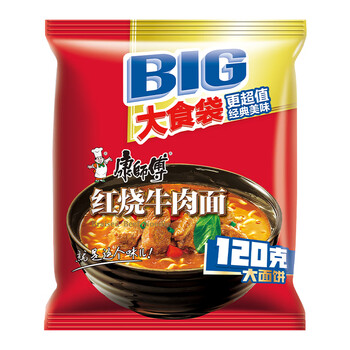 康师傅 方便面 大食袋红烧牛肉面五连包145g*5 泡面袋装速食 方便食品
