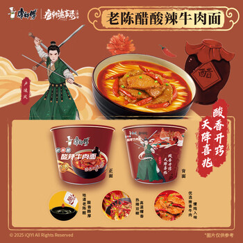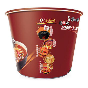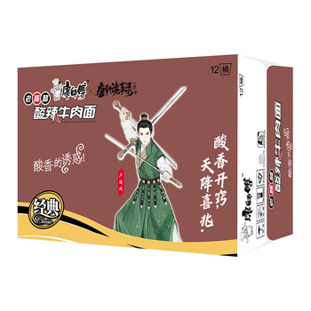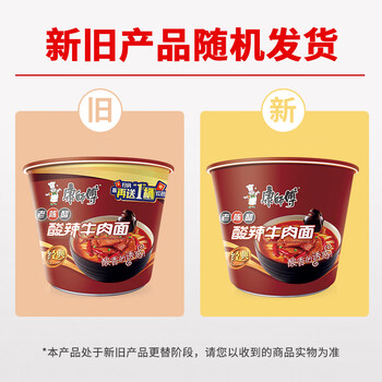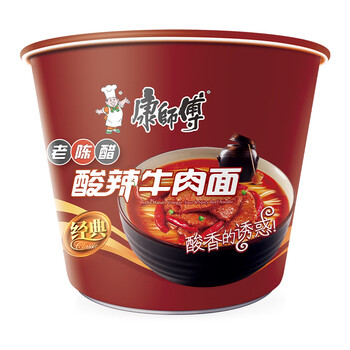 康师傅 方便面 经典老陈醋酸辣牛肉桶面122g*12 泡面整箱速食 方便食品