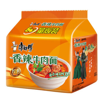 康师傅 方便面 经典香辣牛肉面五连包104g*5 泡面袋装速食 方便食品