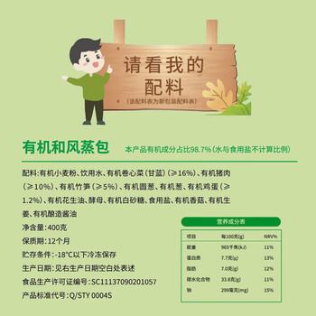 九洲丰园有机和风蒸包400g(50g*8)*1