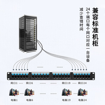 也仁 超五类24口配线架30u镀金 工程级1U机架式机柜CAT5e网络配线架 YR-A2280
