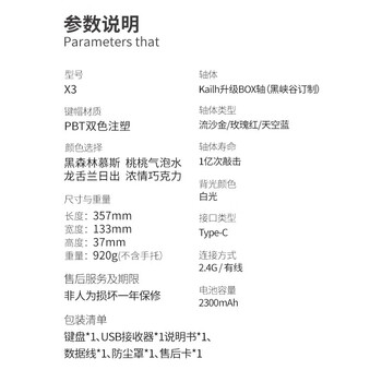 键盘*1 说明书*1 质保卡*1 防尘面罩*1 拔键器*1 手托*1 接收器*1 数据线*1