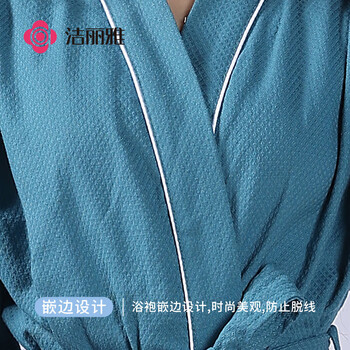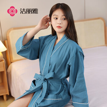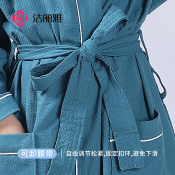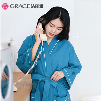 洁丽雅 五星级酒店浴袍情侣纯棉柔软吸水家居浴衣全棉男女通用 黛蓝 M