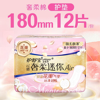 护舒宝奢柔棉迷你卫生巾量少日用180mm12片姨妈巾护垫试用京东自营