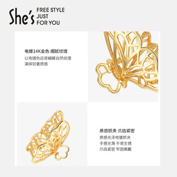 She's茜子发饰蝶影微踪镂空蝴蝶抓夹时尚发卡轻奢发夹生日礼物送女友