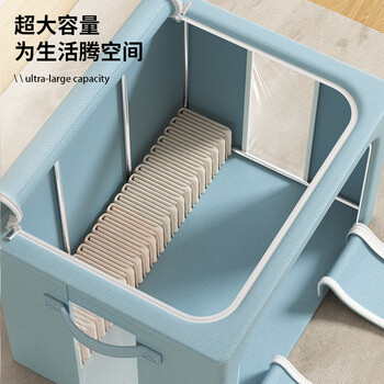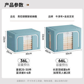 百草园牛津布艺收纳箱衣服棉被整理箱储物箱盒百纳箱66L2个装青石绿