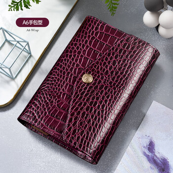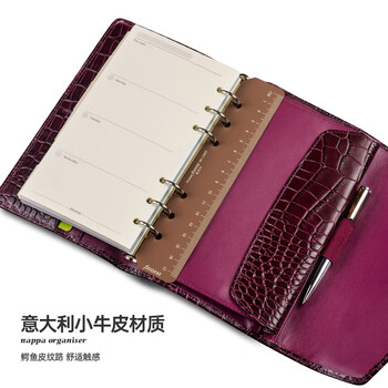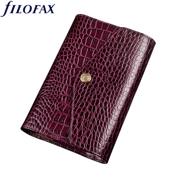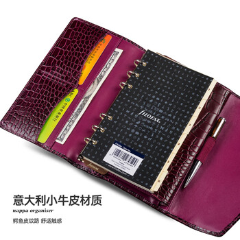 Filofax笔记本英国进口鳄鱼纹小牛皮封面活页手帐拉链包记事本礼盒装Osterley系列A6紧凑型手包紫色028606