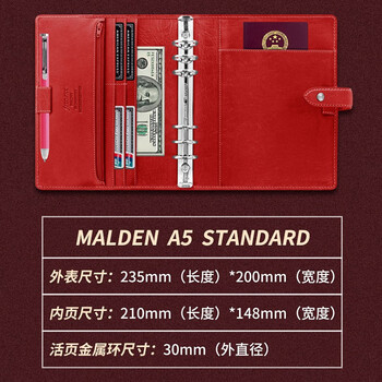 Filofax笔记本英国进口高档活页手账日程记事本真牛皮简约商务办公会议礼品礼盒malden系列A5大红色028600