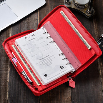 Filofax记事本英国进口高档活页手帐本多功能软皮面笔记本礼盒装saffiano系列A6大红色022534