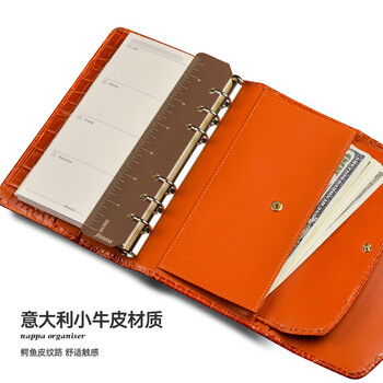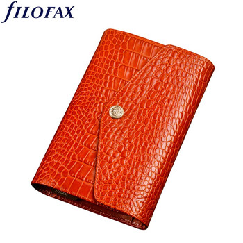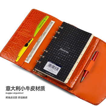 Filofax笔记本英国进口鳄鱼纹小牛皮封面活页手帐拉链包记事本礼盒装Osterley系列A6紧凑型手包橙色028607