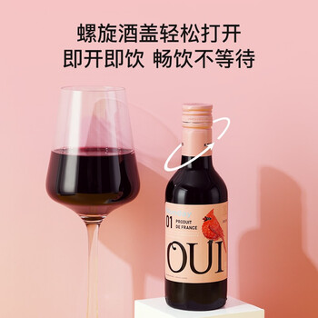 卡伯纳 法国小红鸟周末见小瓶干红葡萄酒187*6便携聚会微醺甜酒年货送礼