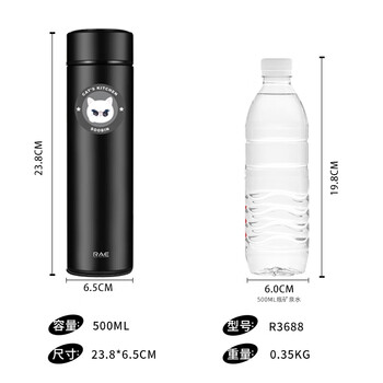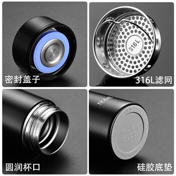 然也保温杯定制学生316不锈钢泡茶水杯子500ml日食记黑色R3688