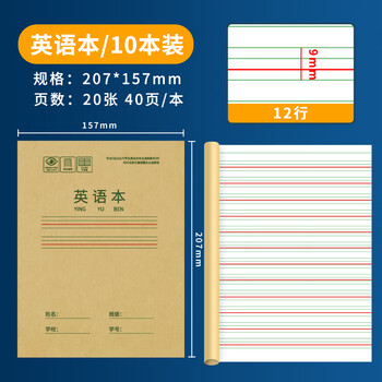 西玛(SIMAA)22K 20张小学生英语本作业本 软抄本 练习本 笔记本子文具 10本装 XQ22K5