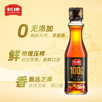 长康纯黑芝麻油200ml 一级香油麻油火锅凉拌菜调味料 正宗纯正