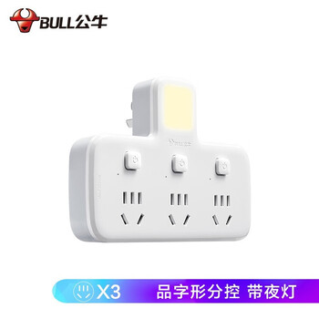 公牛(BULL)插座扩展器一转多/一转三插座/转换插头/转换器/插排 3位分控带夜灯 GN-96033Y