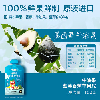 禾泱泱婴幼儿果泥牛油果蓝莓苹果泥100g 宝宝辅食缤纷水果泥西班牙进口