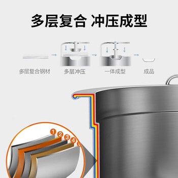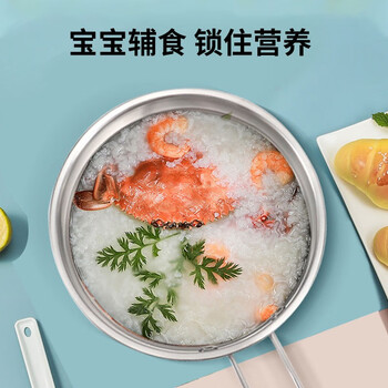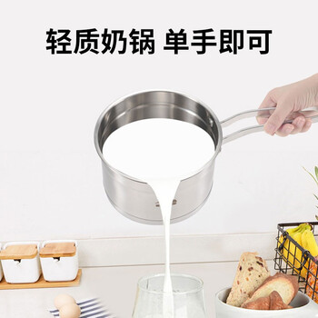 康巴赫奶锅304不锈钢宝宝辅食锅复底无涂层小汤锅煮奶煮面锅16cm