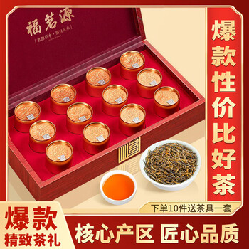 福茗源金骏眉红茶 蜜香浓香武夷红茶新茶叶礼盒送长辈12小罐180g伴手礼