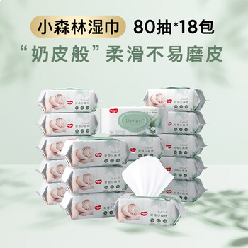 好奇(Huggies)小森林湿巾80抽18包加大加厚婴童手口适用植物纤维家庭装