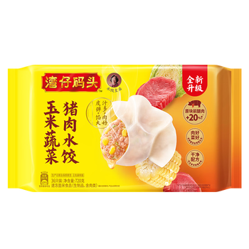 湾仔码头玉米蔬菜猪肉水饺720g36只早餐速食半成品面点速冻饺子
