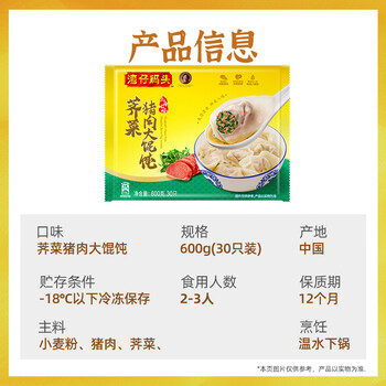 湾仔码头上海风味荠菜猪肉大馄饨600g30只云吞早餐夜宵速食混沌
