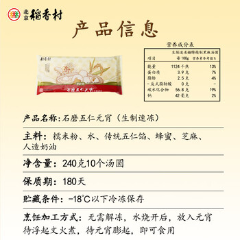 北京稻香村 石磨元宵 五仁口味 240g/10粒 汤圆节 早餐食材 夜宵面点生鲜