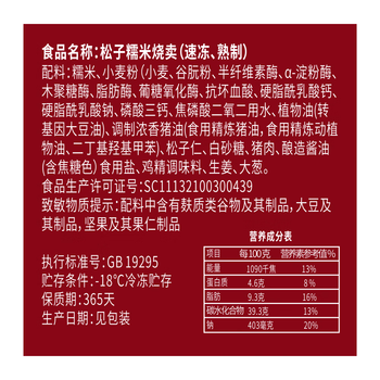 松子烧麦300克*3 外袋