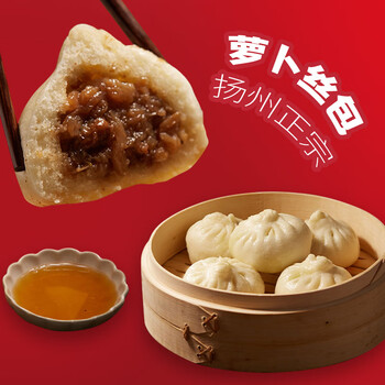 富春萝卜丝包300g*2袋12只 早餐包子速食速冻蒸包半成品 扬州特产包子