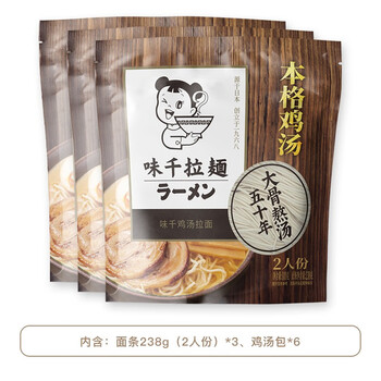 味千拉面 味千鸡汤拉面300g*3连包 ( 2人份/包 含料包 面 早餐食材 日式拉面 )
