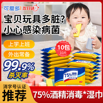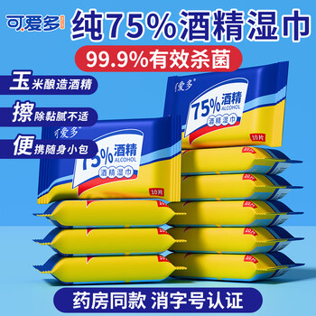 可爱多75%酒精湿巾 消毒湿纸巾 便携小包卫生清洁杀菌湿巾纸10抽*10包