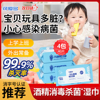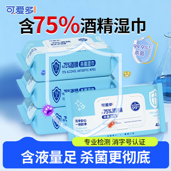 可爱多酒精湿巾40抽*4包 杀菌消毒湿纸巾 家用办公便携 学生清洁湿巾