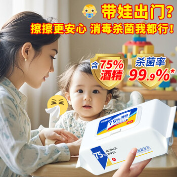 可爱多75%酒精湿巾 杀菌消毒湿纸巾80抽*10包 家用办公卫生清洁整箱包邮