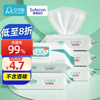 安可新杀菌湿巾【50抽*5包】不含酒精卫生湿纸巾杀菌率99%儿童可用