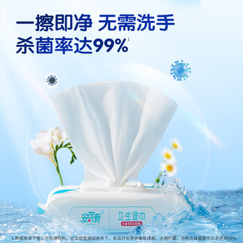 安可新 杀菌湿巾【50抽*2包】杀菌率达99%不含酒精卫生湿巾儿童可用