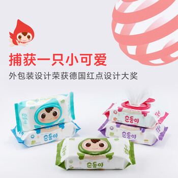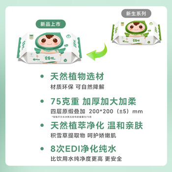 顺顺儿婴儿湿巾幼儿适用手口湿巾绿色加厚带盖70抽
