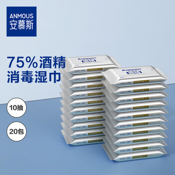 安慕斯75%酒精湿巾10抽*20包 病毒消杀便携湿巾纸巾 杀菌率>99.9%
