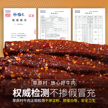 草原村 风干牛肉干长条休闲解馋零食正宗内蒙古特产肉干肉脯500g香辣味