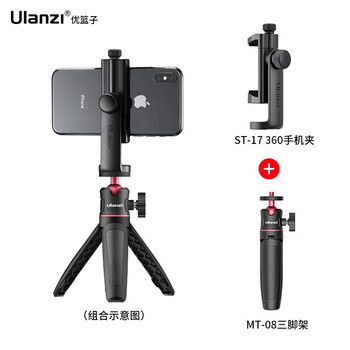 ulanzi 优篮子 ST-17手机夹+MT-08三脚架手机Vlog套装360度冷热靴手机夹桌面横竖拍Vlog视频摄像