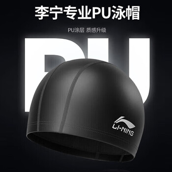 李宁 LI-NING 男女游泳帽 PU涂层长发防水泳帽 护耳舒适不嘞头LNMT856/LNMT858藏青