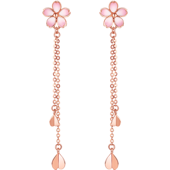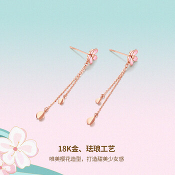 周六福18K金耳钉女樱花醉系列长款耳饰生日礼物 KIHH096837 一对