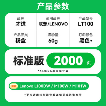 才进适用联想领像m101dw碳粉m100w m100 m102w墨粉LT100打印机通用L100w m100D激光L100d L100dw m101d/w复印