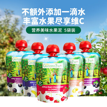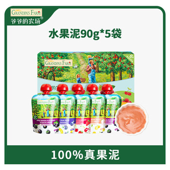 爷爷的农场进口婴幼儿果泥西梅泥宝宝水果泥90g*5 零食辅食口味随机 礼盒装