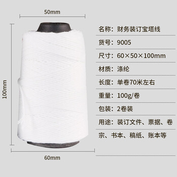 优必利 会计凭证装订线 宝塔线 财务档案装订线绳穿线针 账绳 凭证绳 2卷装 约140米 9005