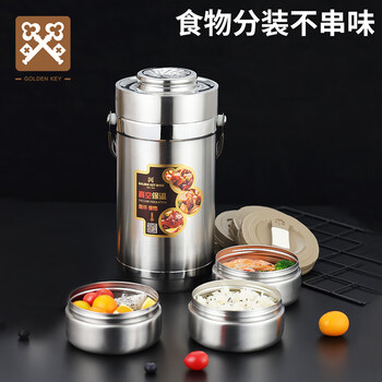 金钥匙(GOLDEN KEY)304保温提锅经典2.6L全钢真空便当保温饭盒保温桶GK-JBD2600T