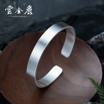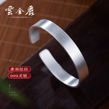云金丽银手镯999足银男款个性拉丝简约银饰开口银镯子送男友生日礼物