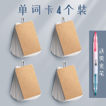 金值 牛皮纸400张空白英语单词卡片 白色硬卡纸便携硬质活页高中随身记背环扣式打孔手写学习自制字卡小学生