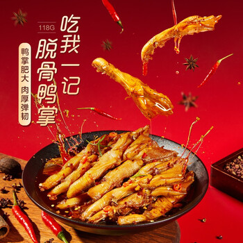 来伊份嗨吃无骨脱骨鸭掌香辣味118g卤味熟食去骨鸭爪肉干肉脯休闲零食