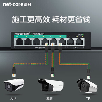 磊科(netcore)S8P 8口百兆6口供电POE交换机 监控摄像头分离器 非网管网络交换器 AI智能企业级分离器